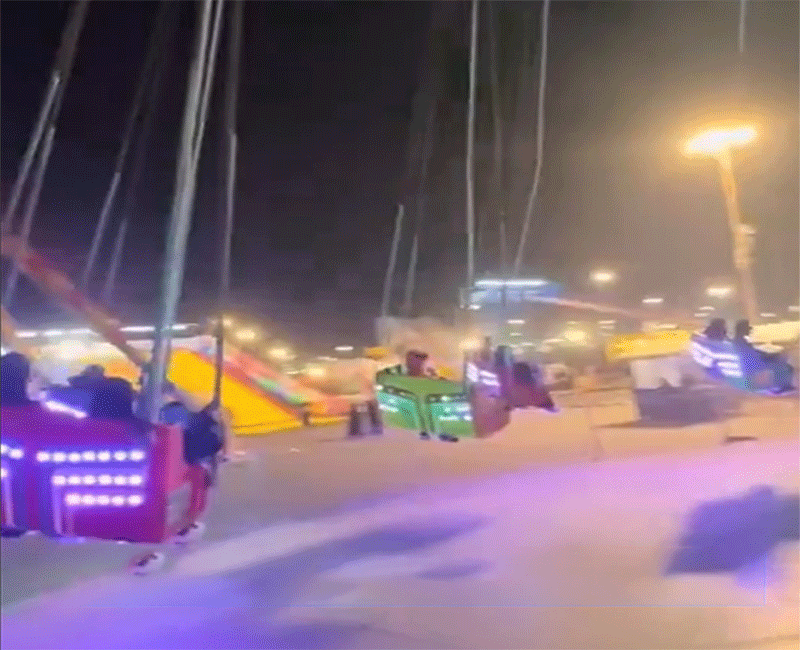 وثّق مقطع فيديو متداول عبر منصات التواصل الاجتماعي لحظة اصطدام لعبة ترفيهية «أرجوحة» داخل أحد الملاهي الواقعة في الحديقة المركزية بمدينة تبوك، وذلك أثناء تشغيل اللعبة ووجود عدد من الزوّار في الموقع، فيما باشرت الجهات المعنية التحقيق.